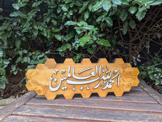 Décoration sur bois artisanale "Al-Hamdu Lillahi Rabbi Al-'Alamin"